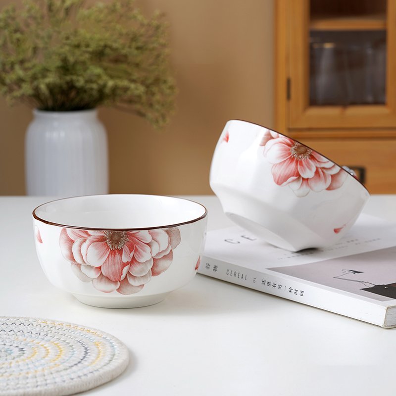 4.5-inch National belleza rojo Rhombus cerámica tazón -1252