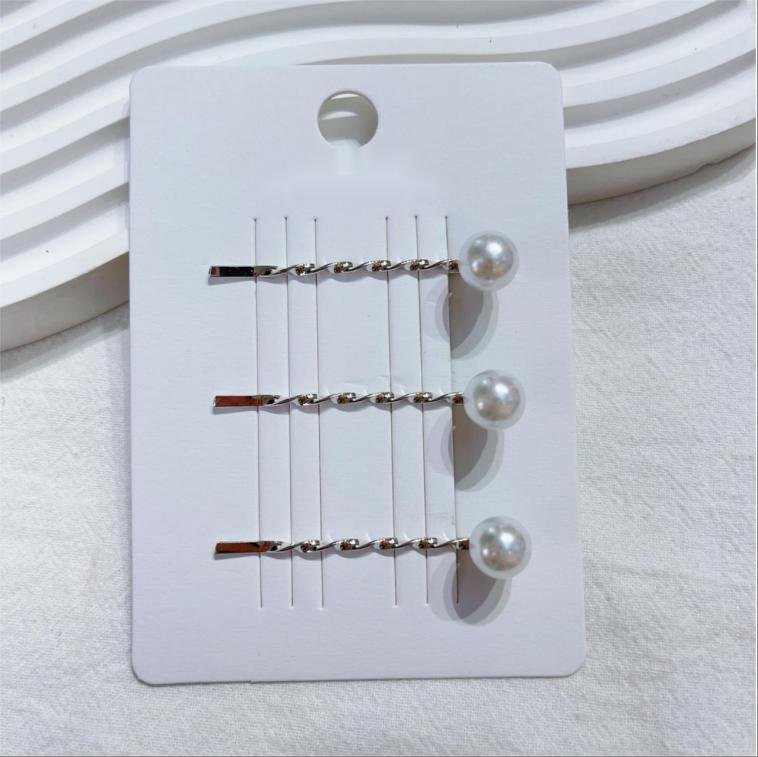 Braided Silver Pearl Bobby Pins 6cm 3unidades