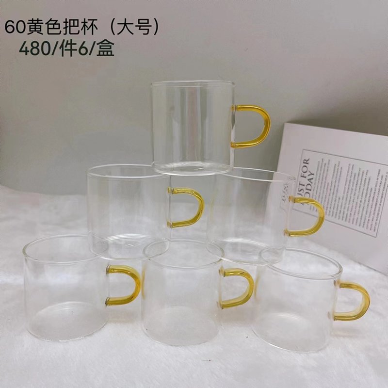 Sé el primero en valorar “Vidrio vaso with yellow asa 75ml-60”