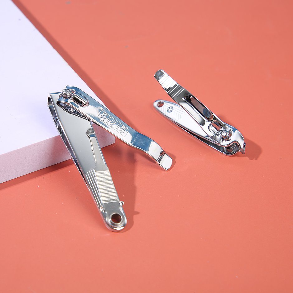 Instrucciones: Rotate the handle of the nail clipper 180 degrees, place the nail at the cutting edge, ensure that the nail is in the middle of the two ends of the cutting edge, carefully press the end of the nail clipper to trim the nail from different angles, and the i