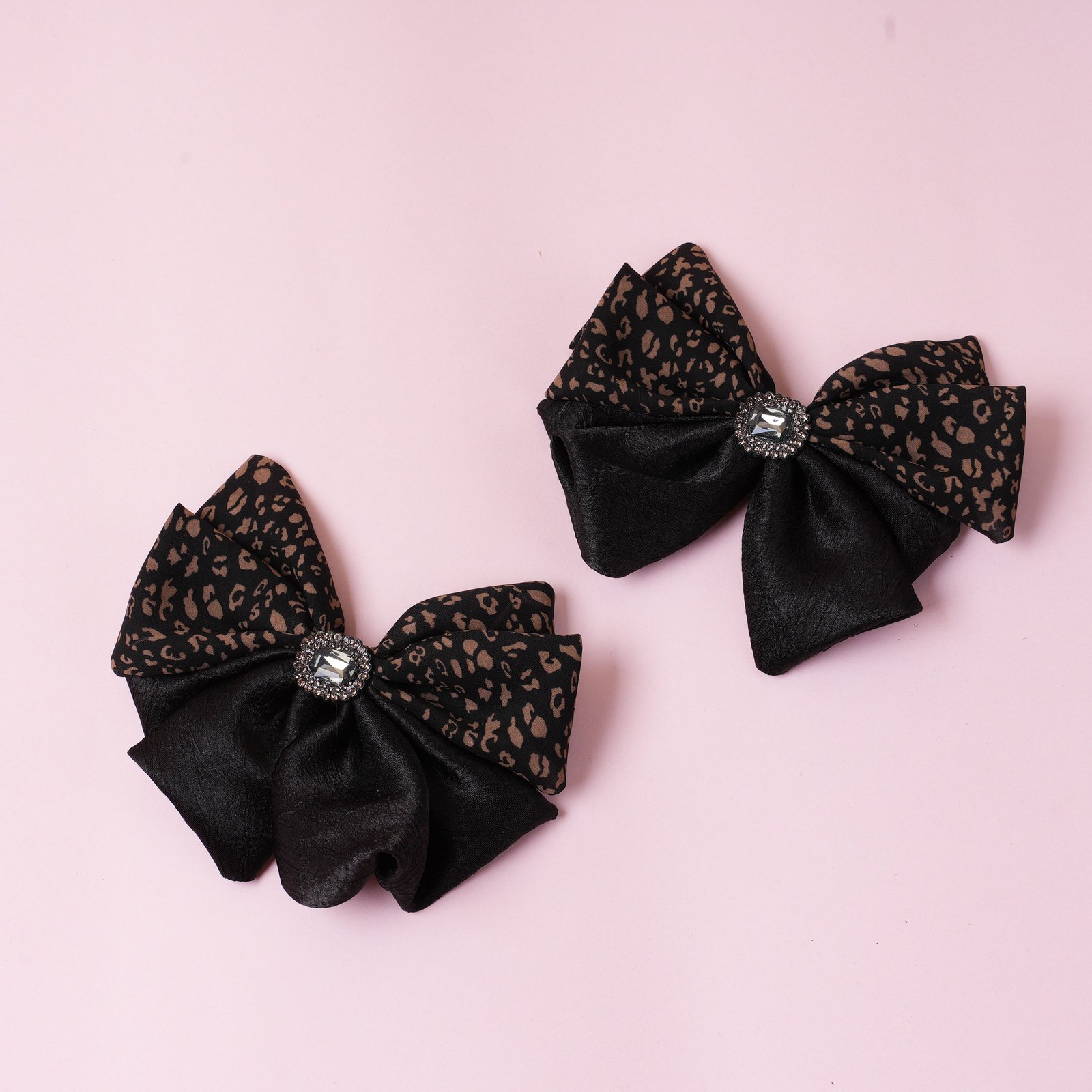 Leopard Print negro Rhinestone tela cabello pinza