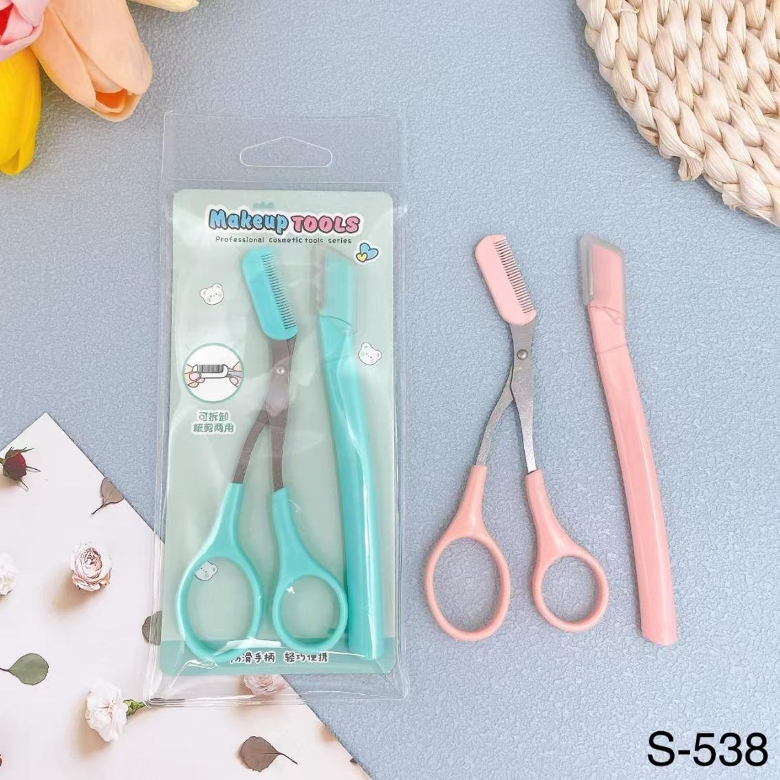 Microscopic Eyebrow Razor, Eyebrow peine and Scissors set – S-538