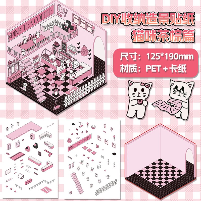 Organizador Landscaping Stickers-Cat Tea Cafe-KMJ1818